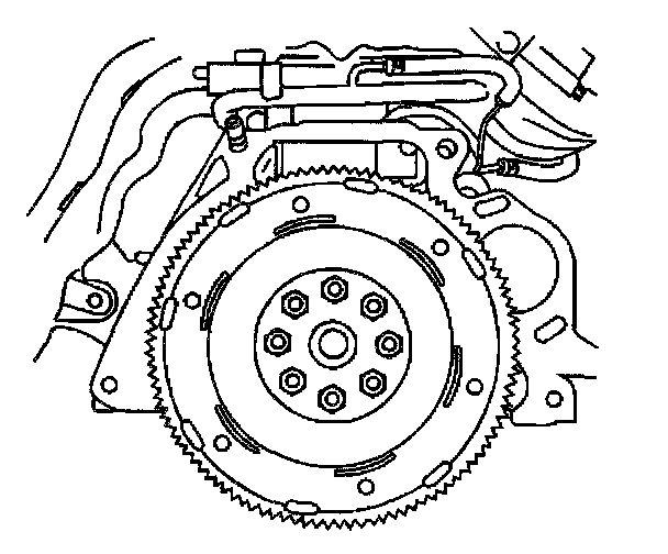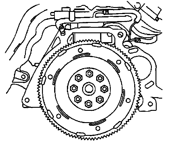 2. Apply GM P/N 12345493, or the equivalent, to the flywheel retaining bolt threads.