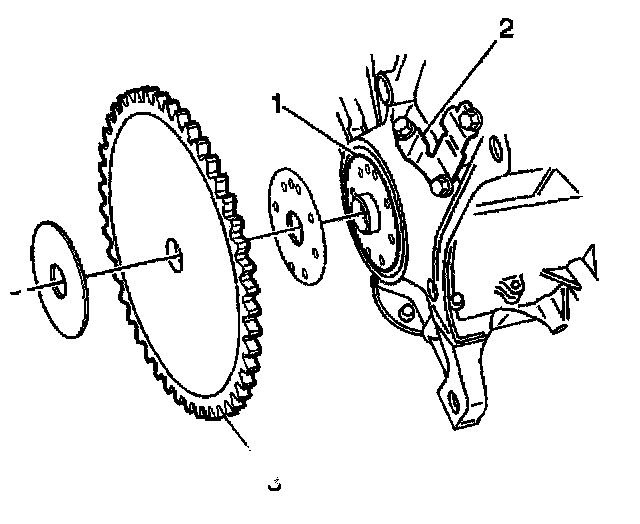 2. Inspect the ring gear (2). Replace the flywheel if the ring gear is damaged, cracked or worn.