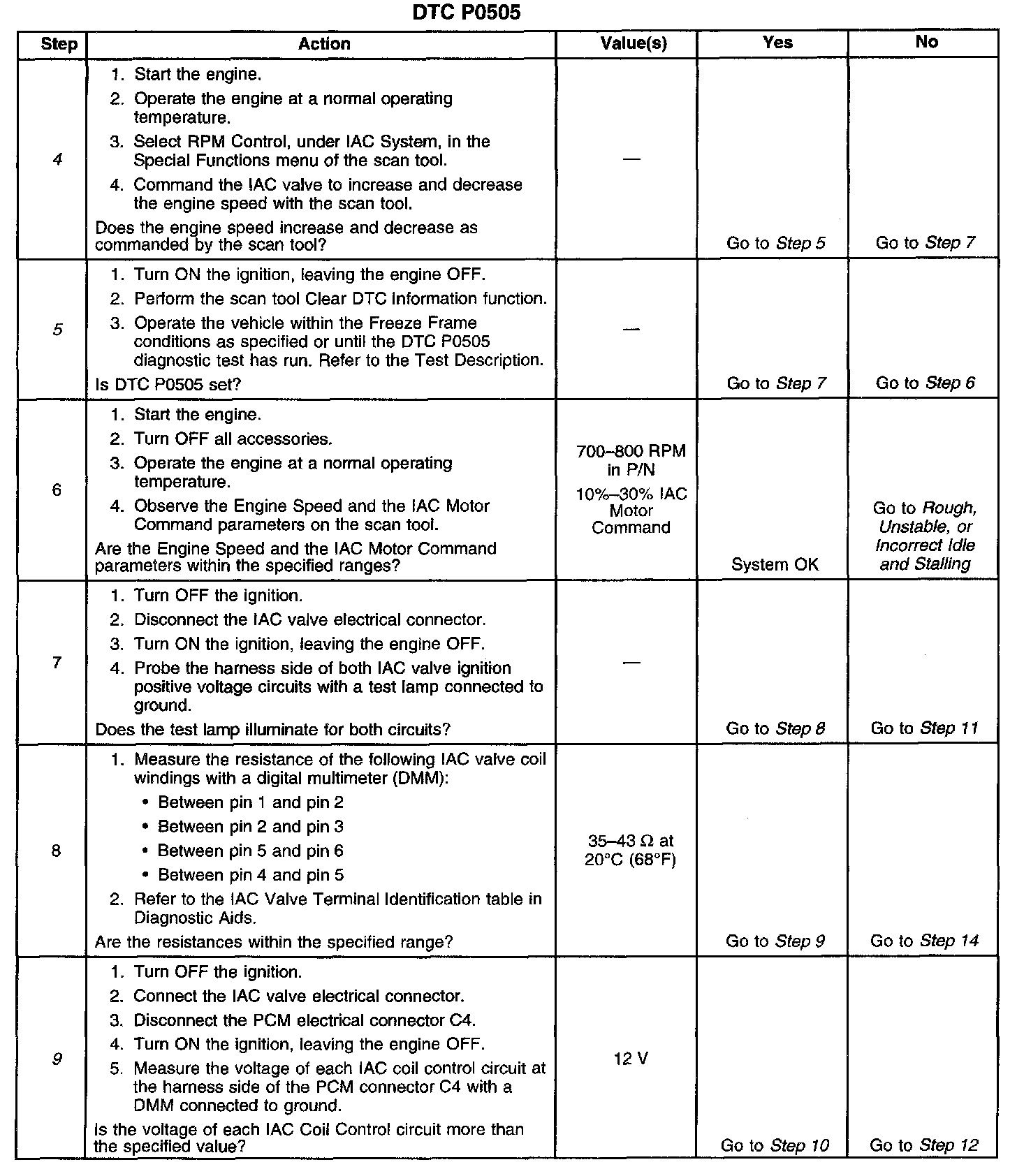 9. This step checks the electrical circuits between the IAC valve and the PCM.