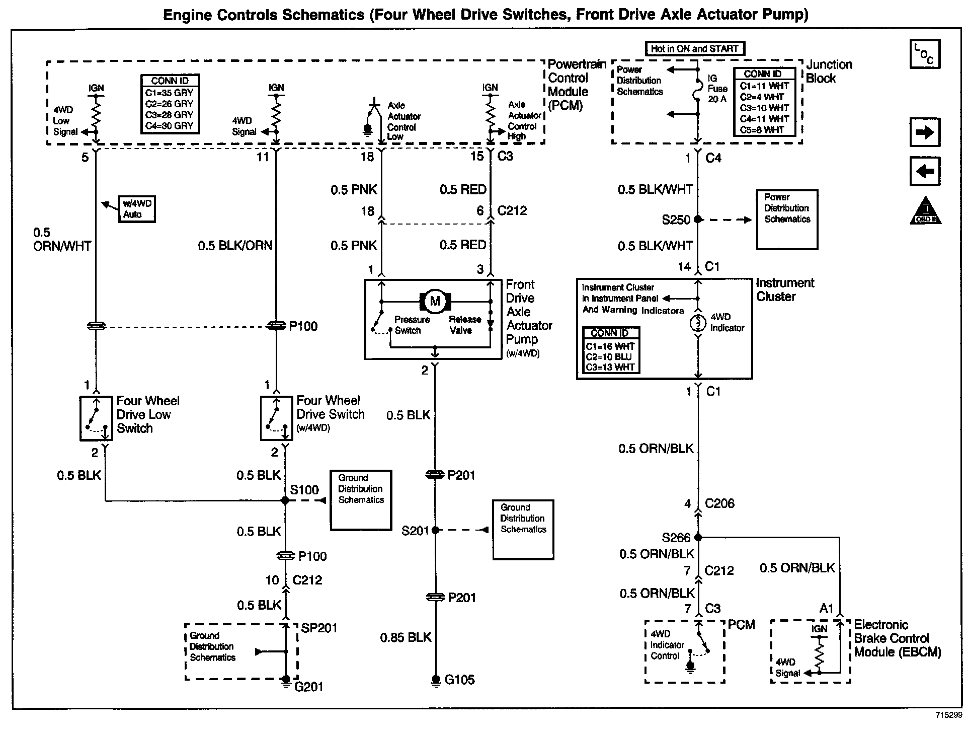 Engine Controls Schematics: Four Wheel Drive Switches, Front Drive Axle Actuator Pump: