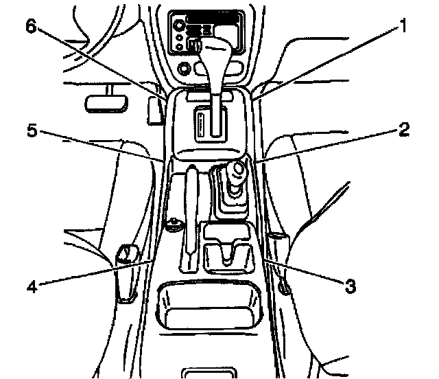 12. Secure the console box with 2 plastic retaining clips (2,5) and 4 screws (1,6,3,4).