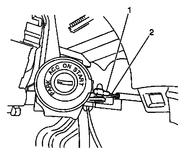 4. Remove the bracket retaining screw (2) from the ignition switch.