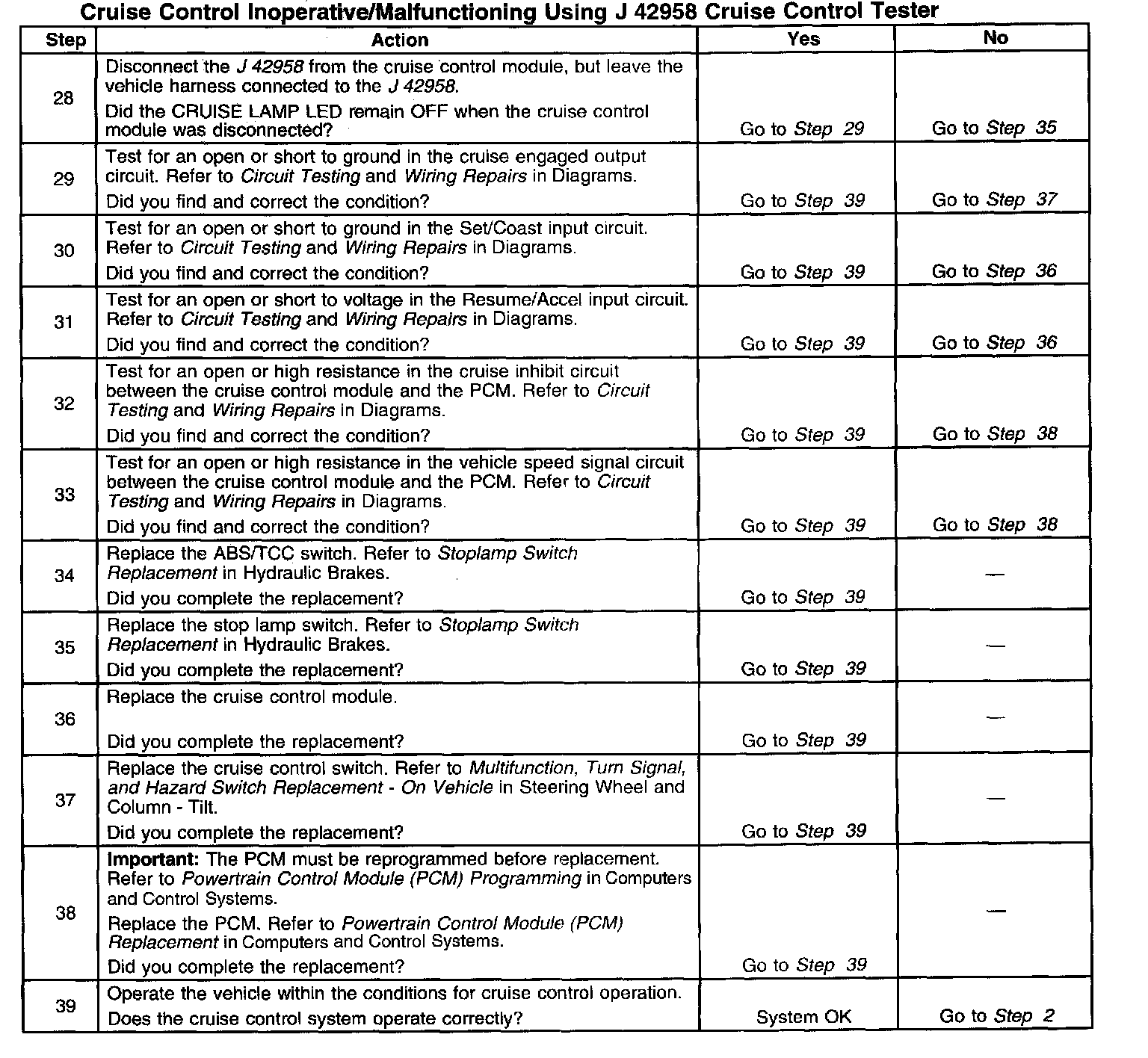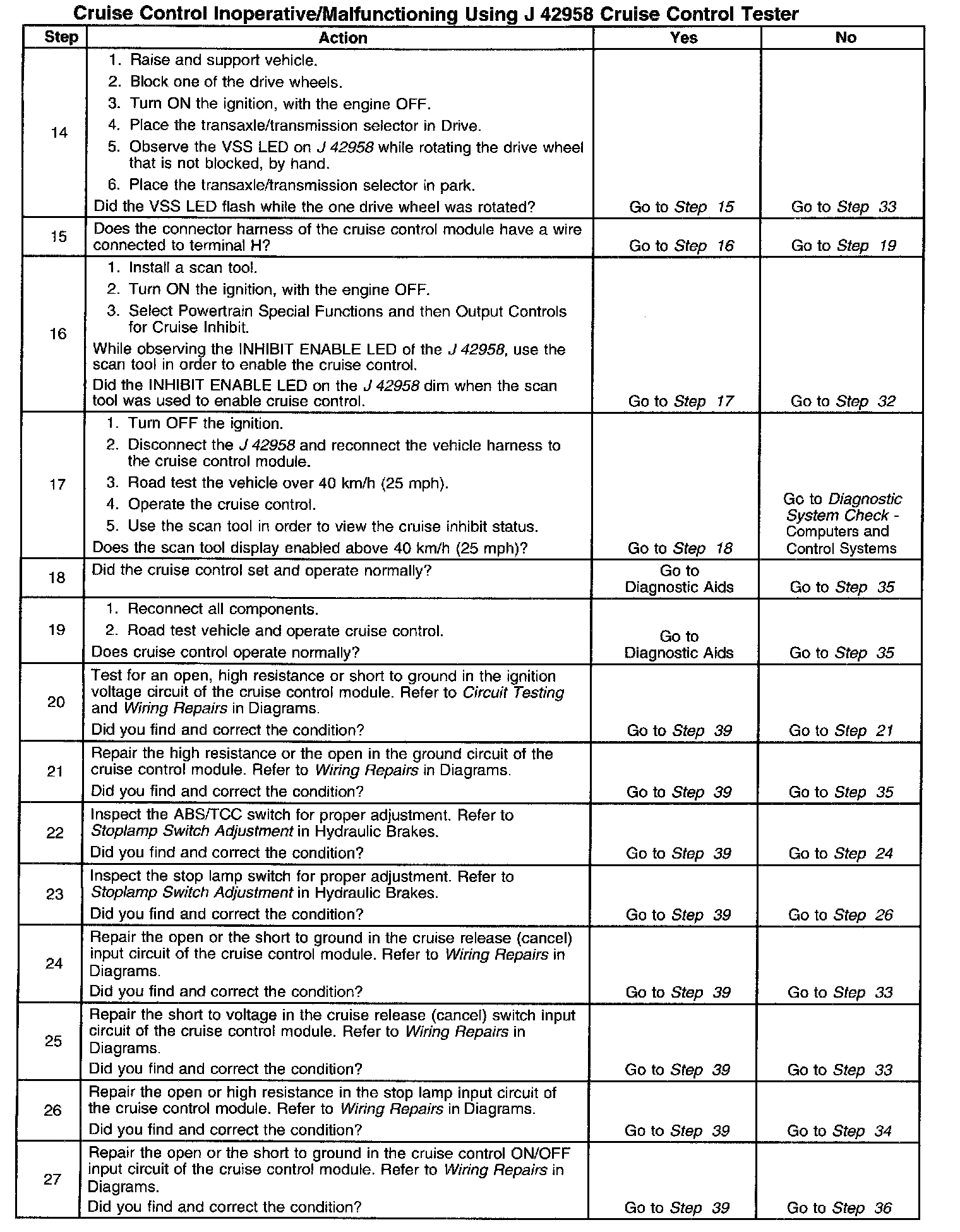 The PCM will inhibit (not allow) cruise control if one or more of the following has occurred: