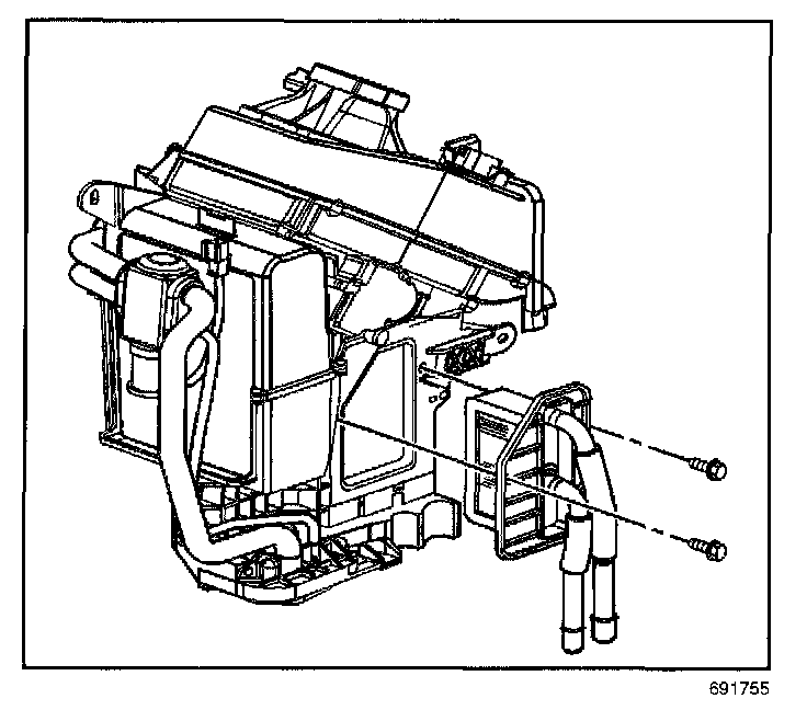 12. Remove the auxiliary heater core mounting screws.