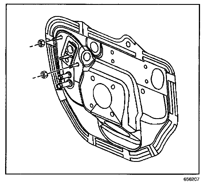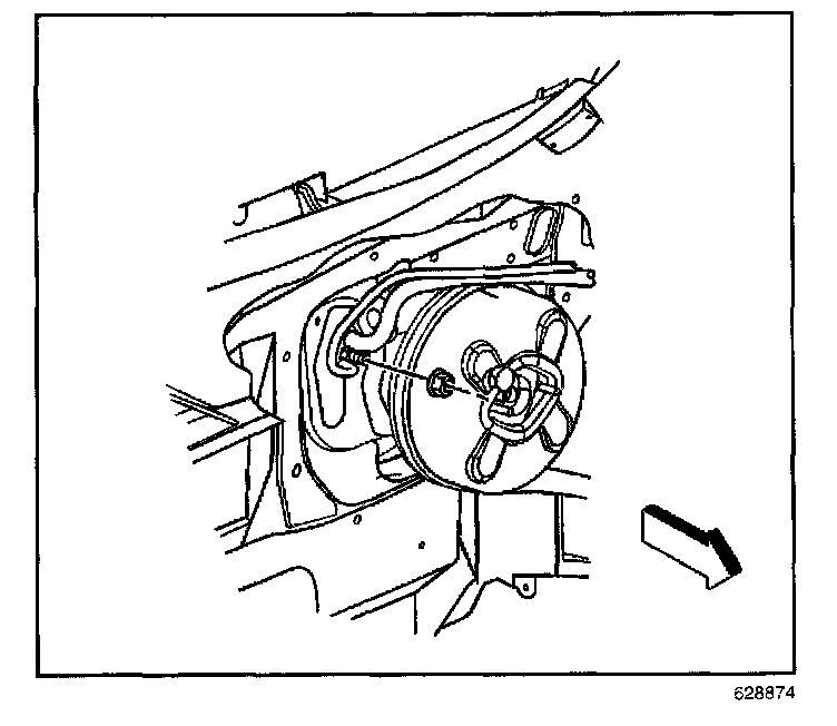 2. Install the HVAC module assembly to brake pedal bracket nuts.