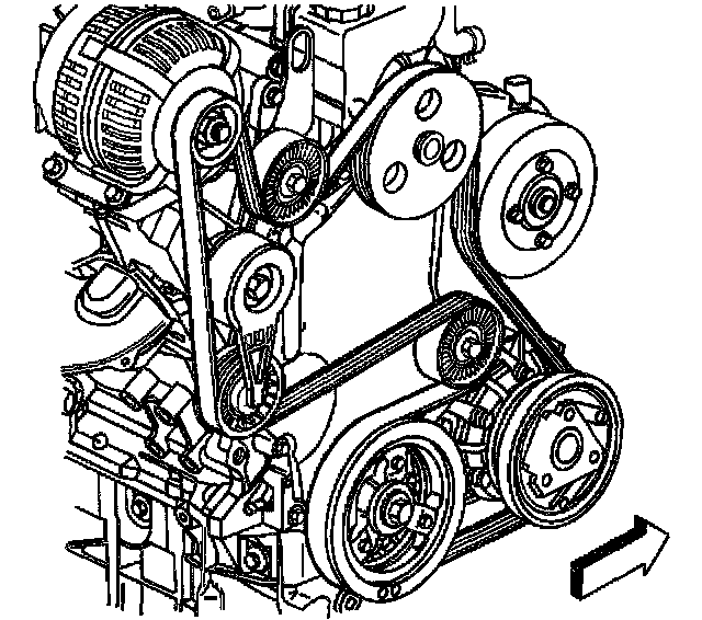 Important: Ensure that the drive belt is aligned into the proper grooves of the accessory drive belt pulleys.