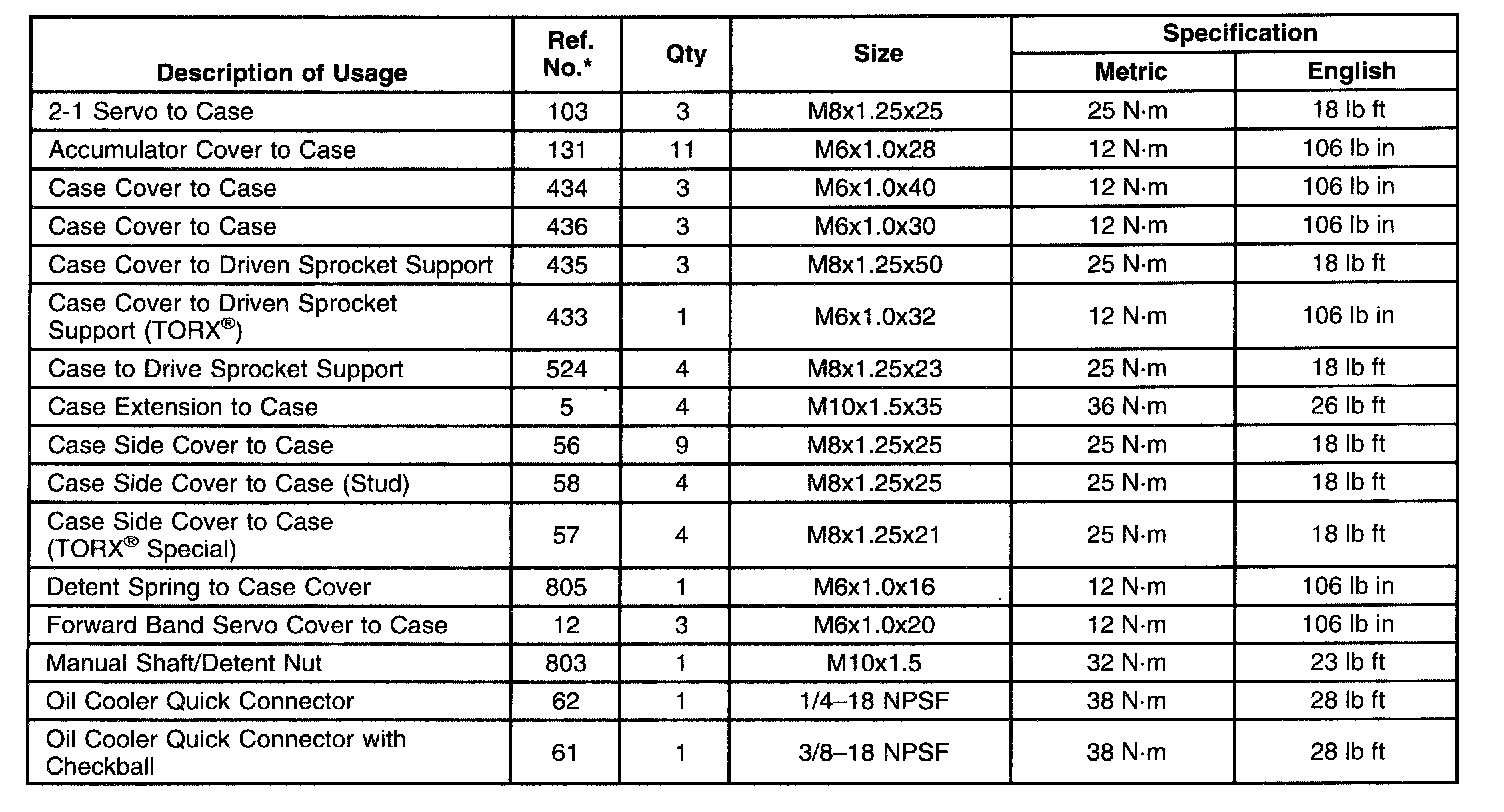 Fastener Tightening Specifications