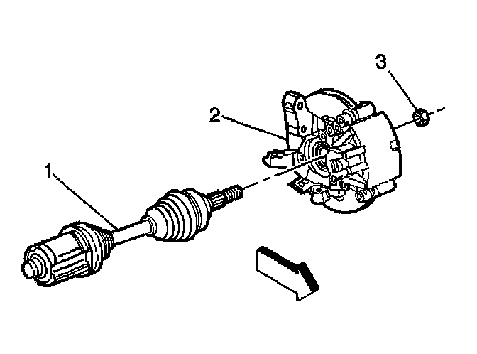 3. Install the wheel drive shaft to the hub and bearing (2).
