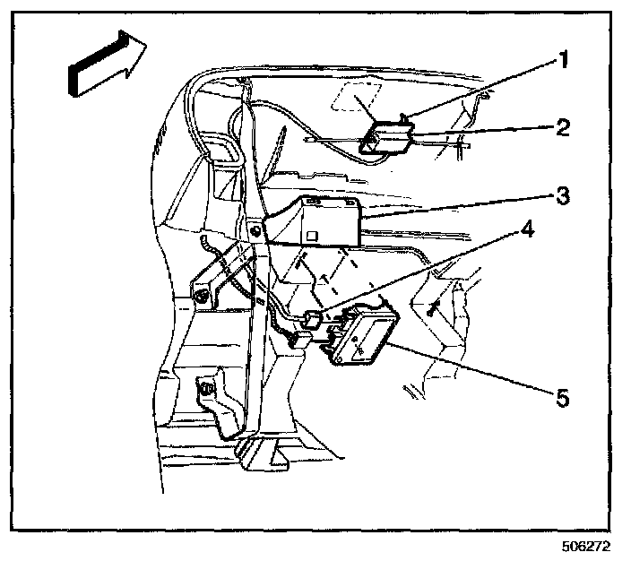 4. Remove the remote keyless entry antenna (1) from the carrier.