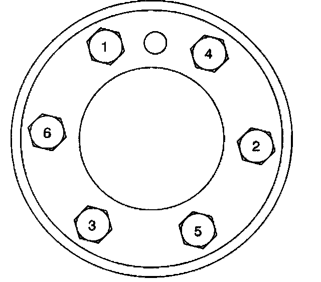Tighten the engine flywheel bolts in sequence to 100 Nm (74 ft. lbs.).
