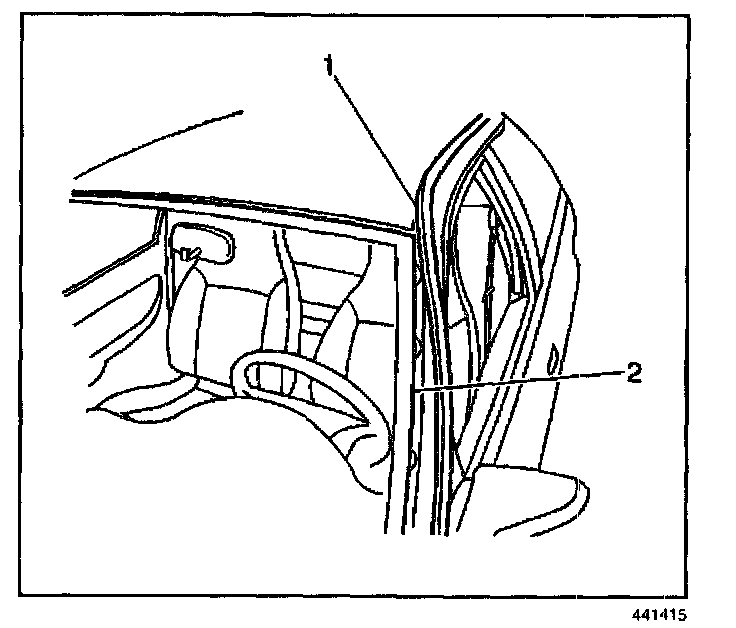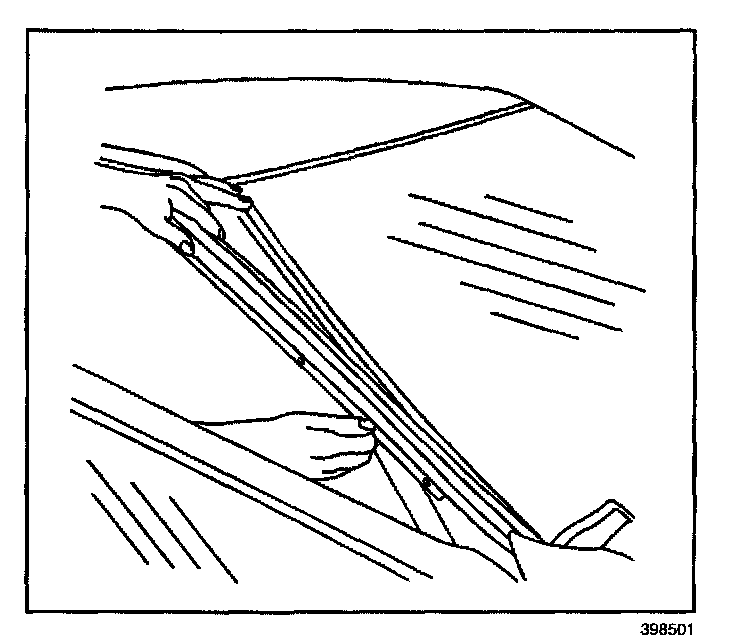 IMPORTANT: The upper window reveal molding fills the cavities between the body and window. If the reveal molding is stretched or damaged, replace the molding.