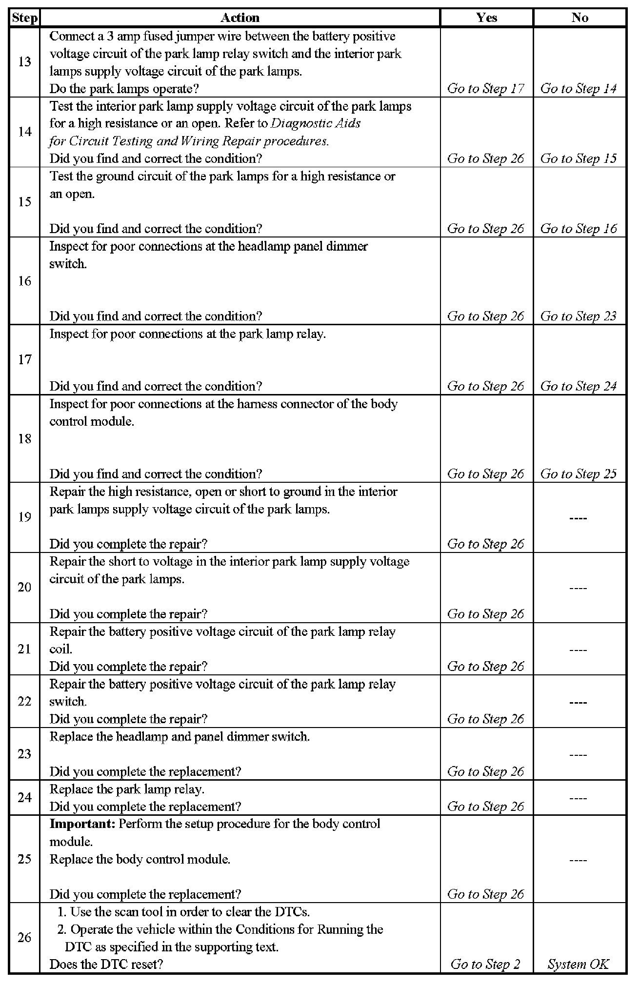 - If the Interior park lamps supply voltage circuit is open, regardless of the headlamp and panel dimmer switch position, the DTC will set.