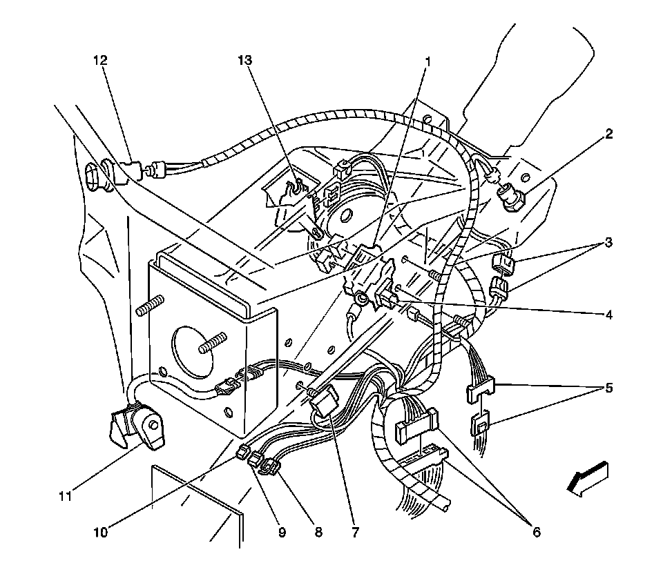 Instrument Panel Harness to IP Mounted Components, Right Front View