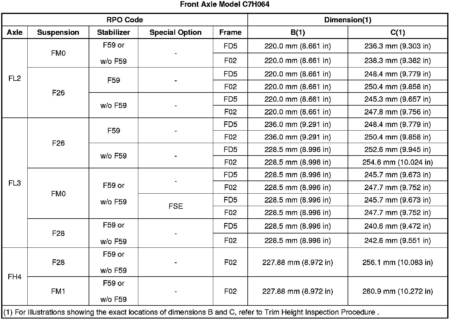 Trim Height Specifications