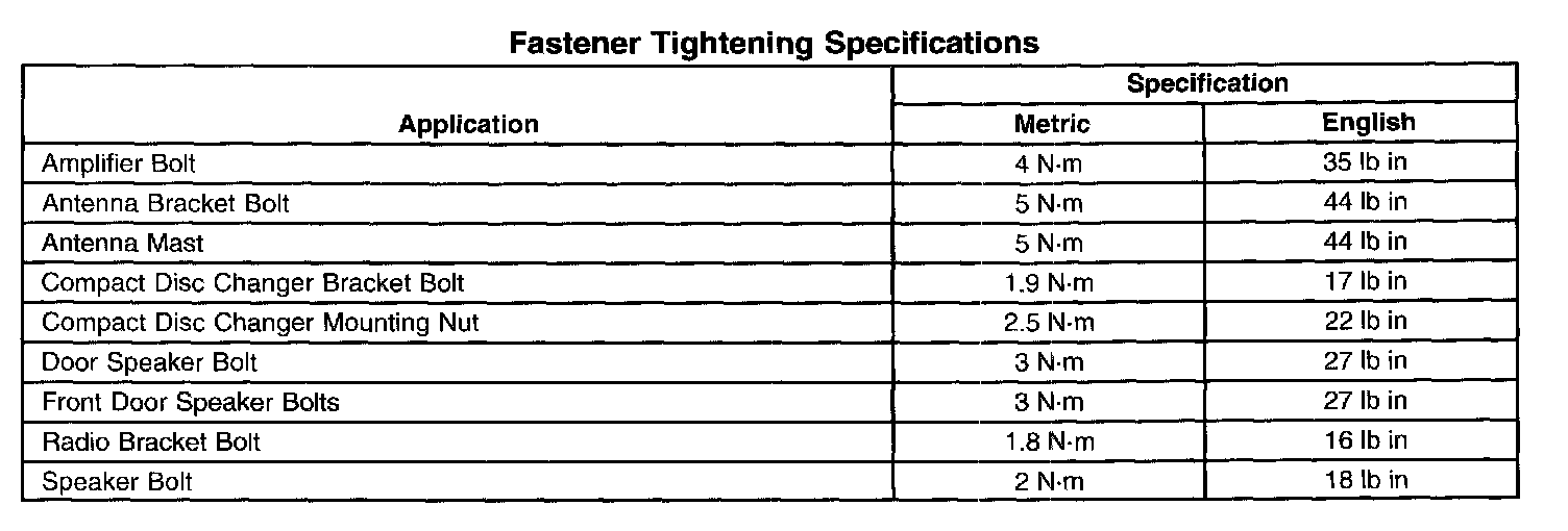 Fastener Tightening Specifications: