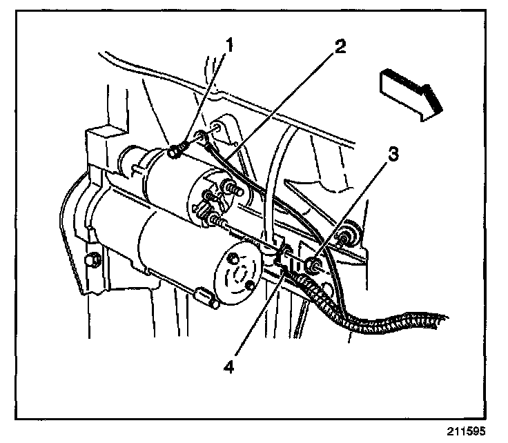 ^ Remove the positive cable nut (3) (at starter solenoid).
