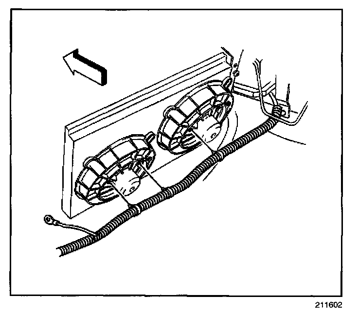 6. Install the positive cable clips at the cooling fans.