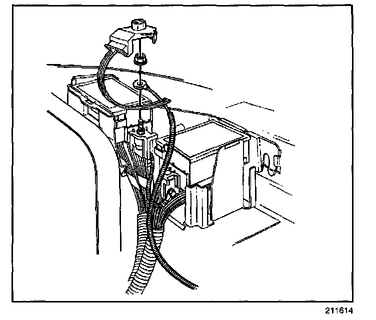 ^ Remove the positive cable from the harness conduit.