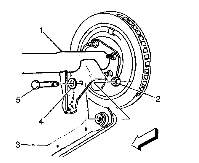 2. Install the lower control arm-to-rear axle bolts (5), washers (4), and nuts (2).
