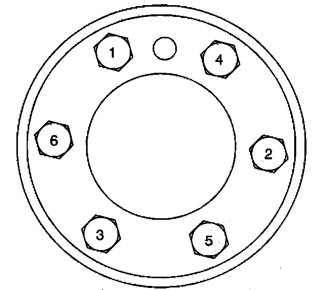 4.2. Tighten the engine flywheel bolts a second pass in sequence to 50 Nm (37 ft. lbs.).