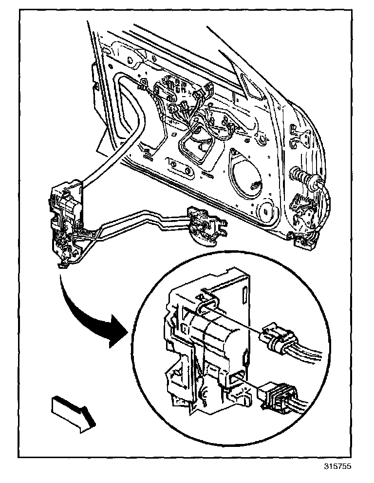 2. Install the door lock in position through the access hole in the door inner panel.