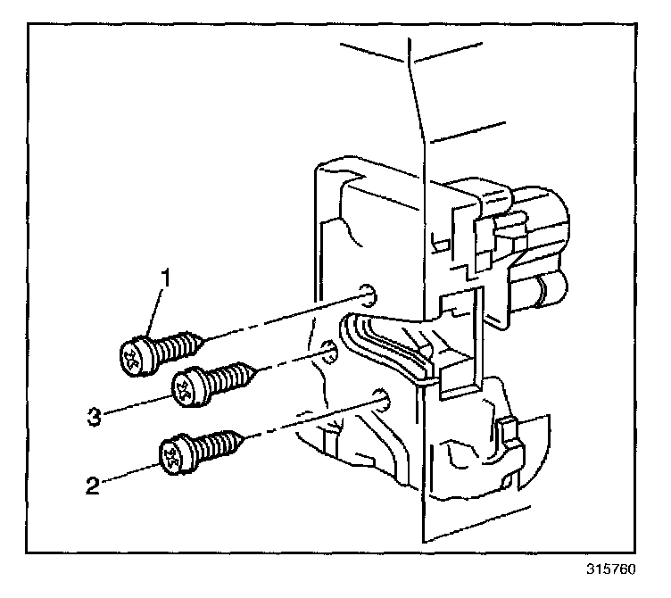 7. Remove the screws (1 2, 3) securing the lock to the door.