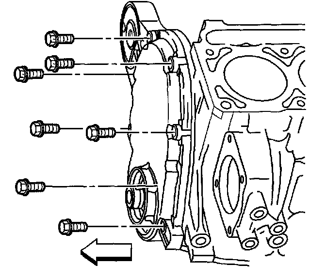 9. Remove the engine front cover. If necessary, carefully use a rubber mallet to loosen the cover.