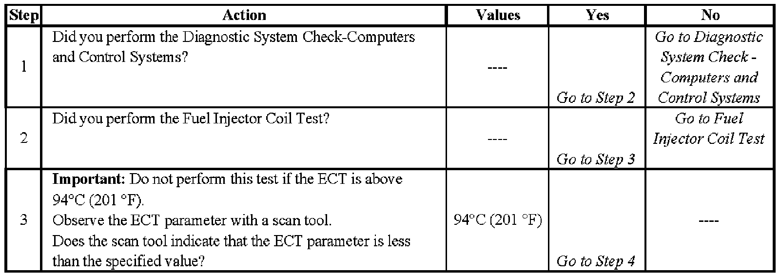 3. The engine coolant temperature (ECT) must be below the operating temperature in order to avoid irregular fuel pressure readings due to hot soak fuel boiling.