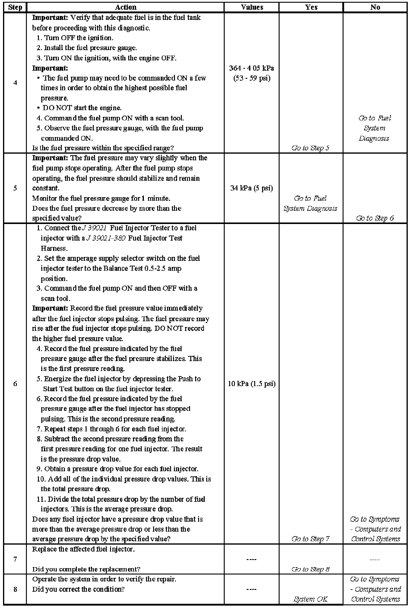 Injector Balance Test Example (Typical):