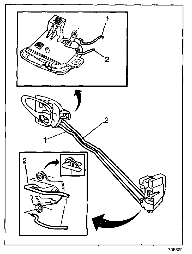 1. Install the inside handle rod, and lock rod to the lock.