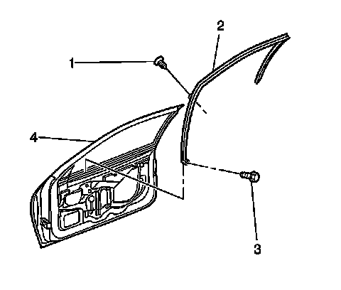 8. Remove the window run channel weather-strip from the front door window (4).