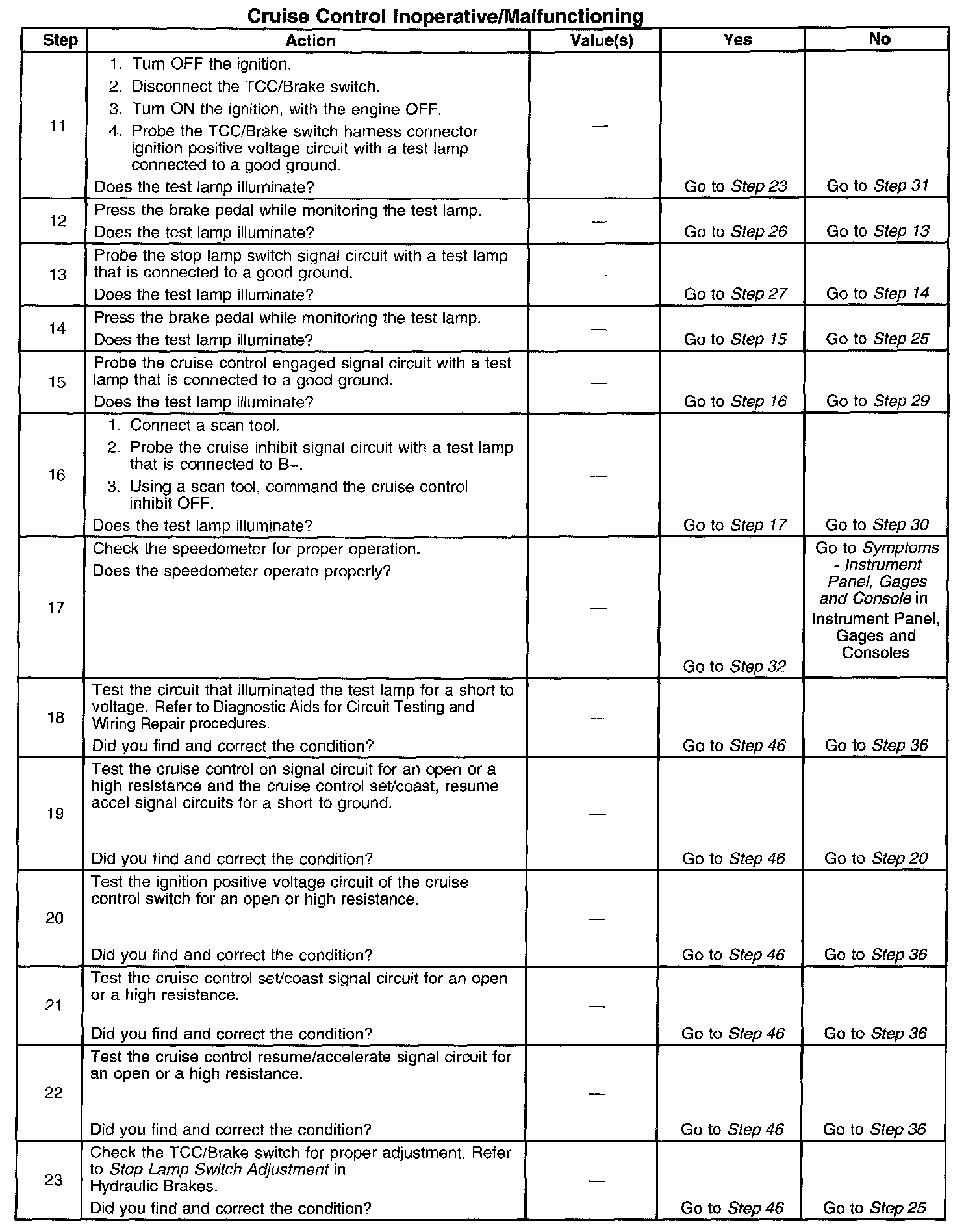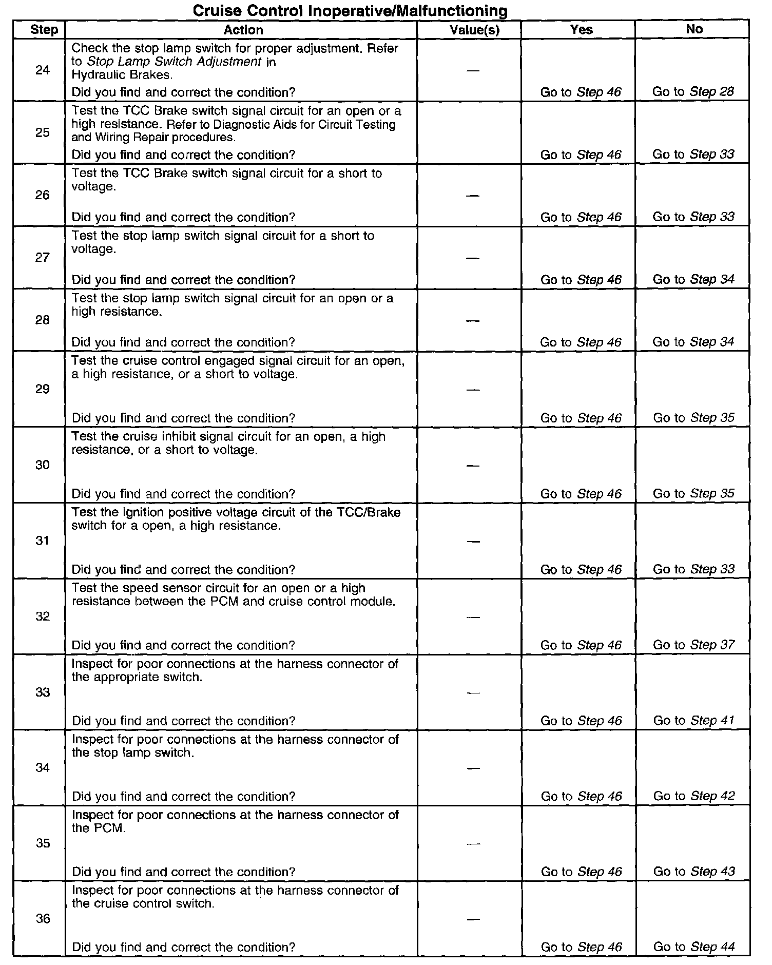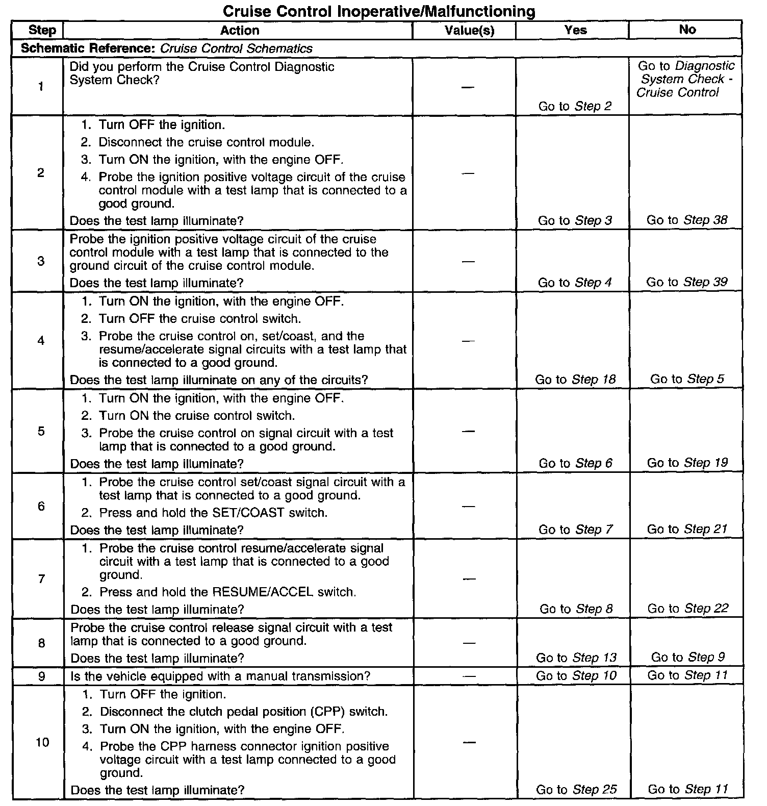 Cruise Control - Inoperative/Malfunctioning