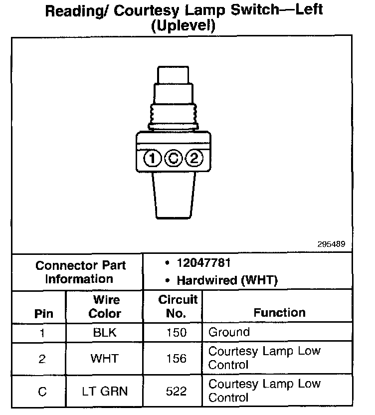 Reading/Courtesy Lamp Switch - Left (Uplevel):