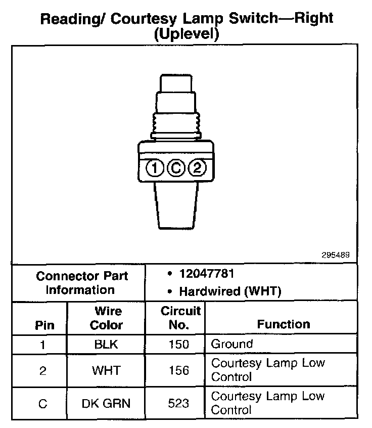 Reading/Courtesy Lamp Switch - Right (Uplevel):