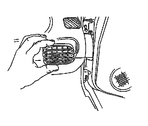 Important: Instrument Panel (IP) Trim Pad should be at room temperature before removal of the air outlet deflector. This will allow the IP trim pad to be more pliable during removal of the air deflector outlet.