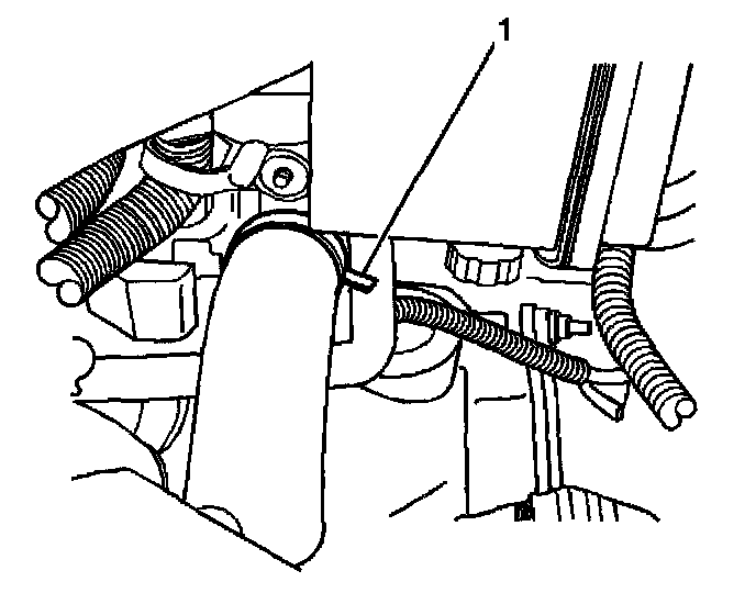 5. Use the J 38185 in order to Reposition the inlet hose clamp from the water outlet (1).
