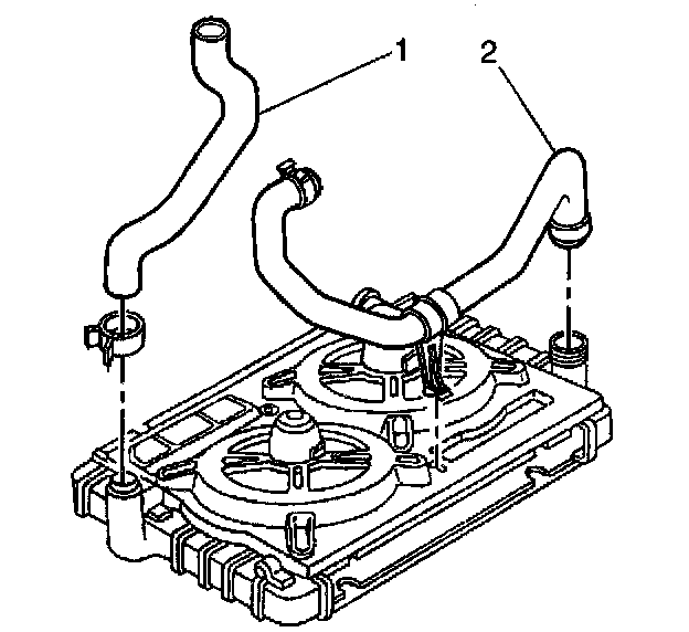 1. Install the inlet hose (1) to the radiator.