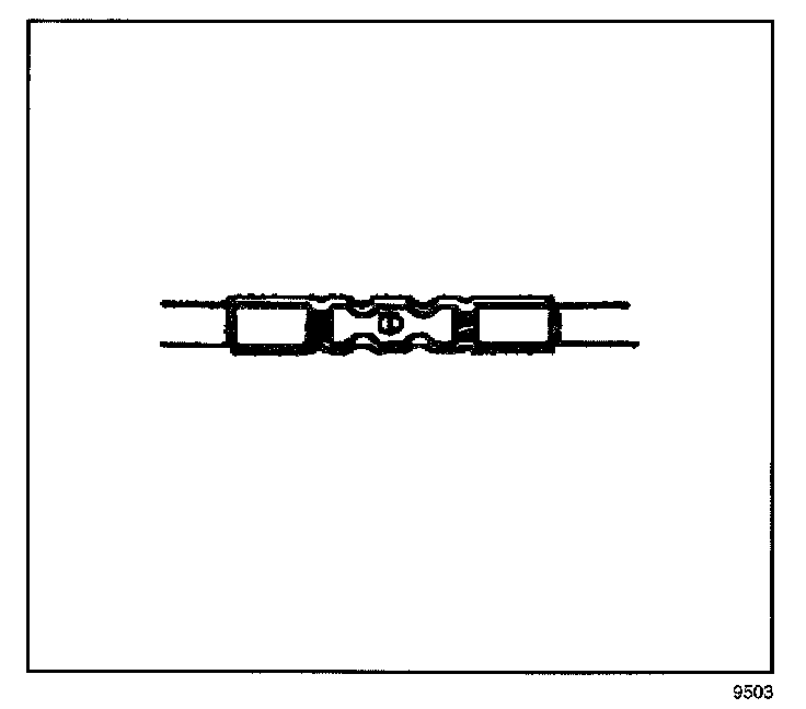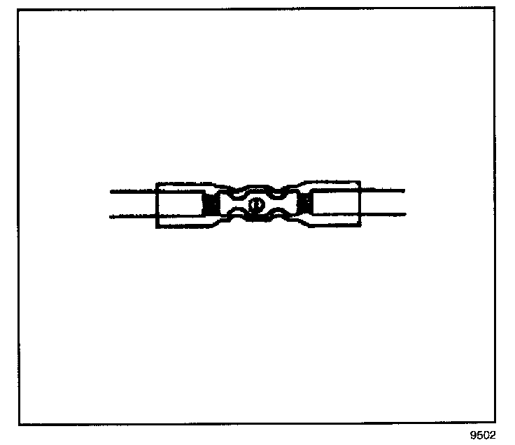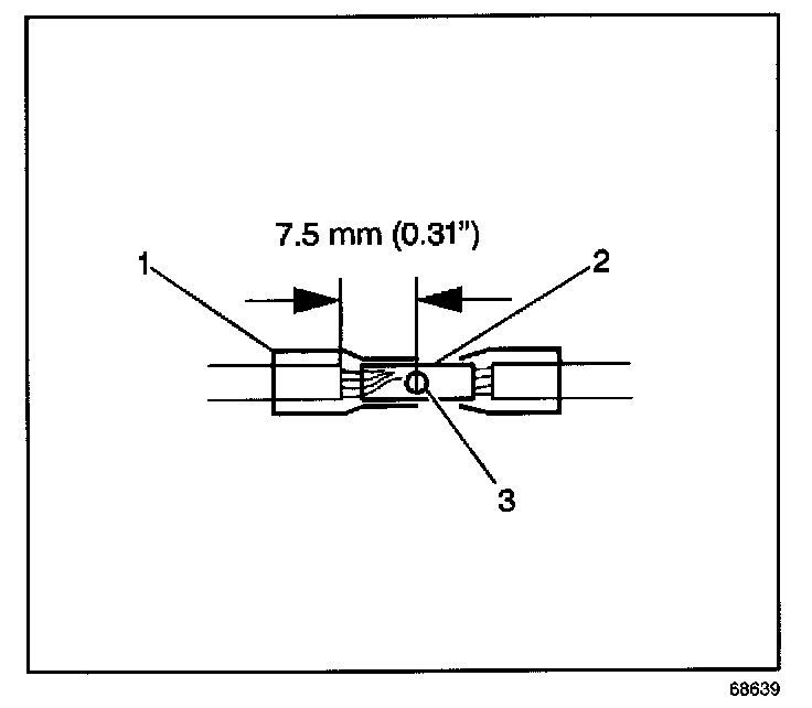 6. Place the splice sleeve in the nest. Ensure that the crimp falls midway between the end of the barrel and the stop. The sleeve has a stop (3) in the middle of the barrel (2) in order to prevent the wire (1) from going further. Close the hand crimper handles slightly in order to firmly hold the splice sleeve in the proper nest.