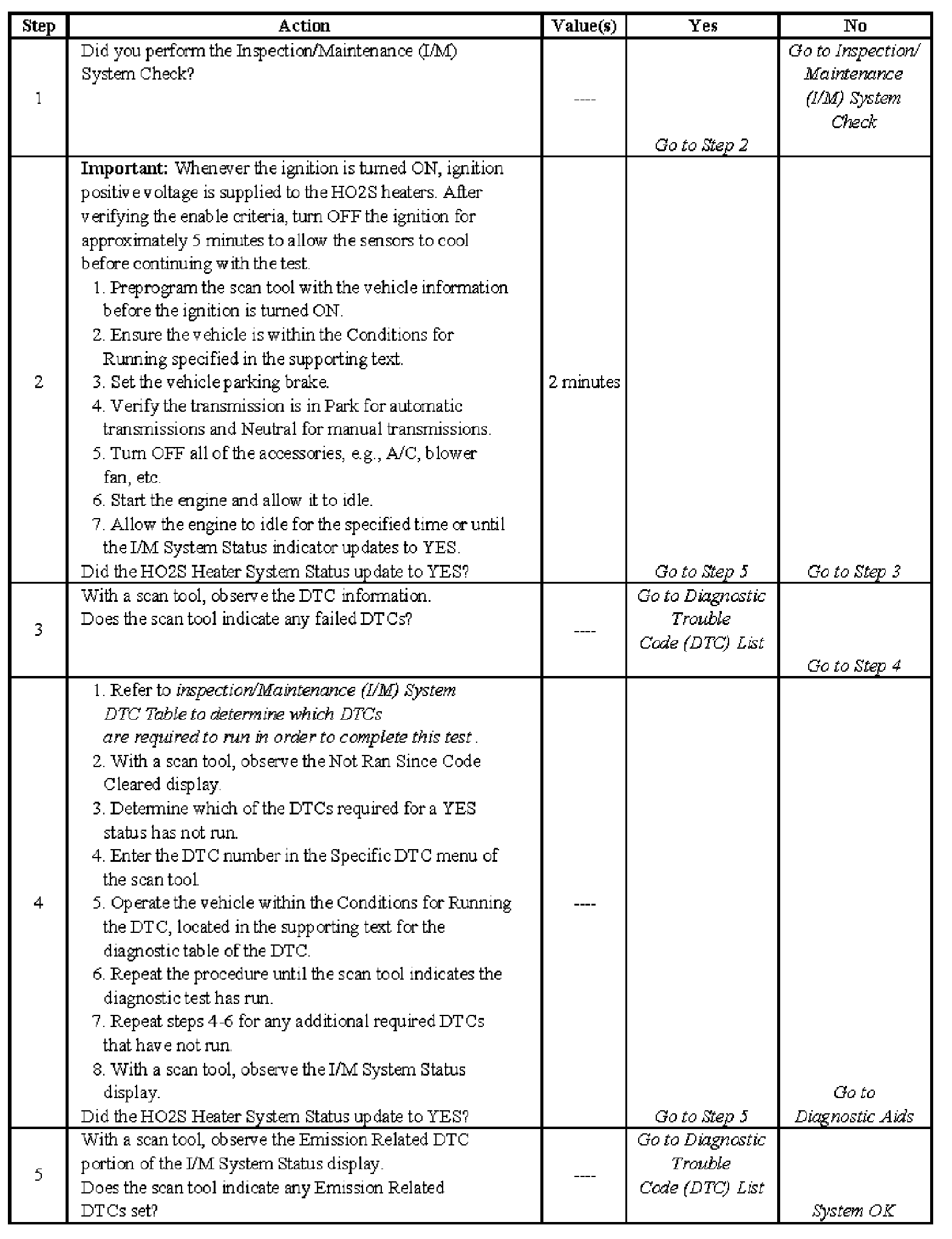 Inspection/Maintenance (I/M) Heated Oxygen Sensor (HO2S) System Set Procedure - Steps 1-5: