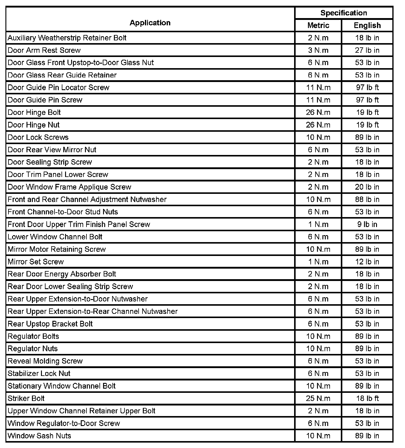 Fastener Tightening Specifications