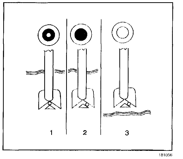 ^ Do not charge a battery when the built in hydrometer is clear or yellow in the center (3). Tap the hydrometer lightly in order to dislodge any air bubbles. The bubbles may cause a false indication. If the hydrometer is still clear or yellow, replace the battery.