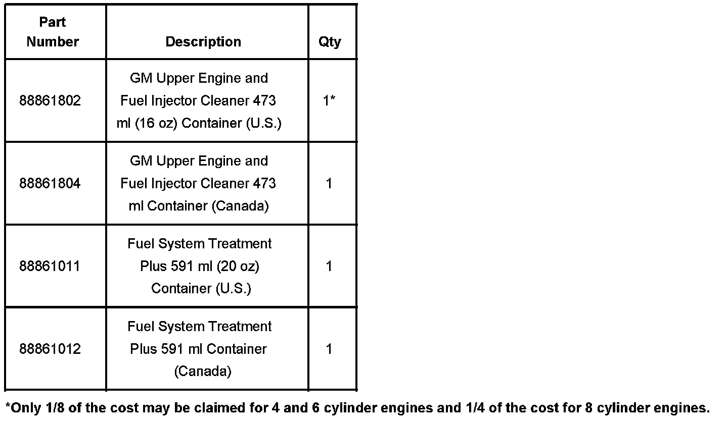 * One bottle of GM Fuel System Treatment Plus, P/N 88861011 (in Canada, P/N 88861012)