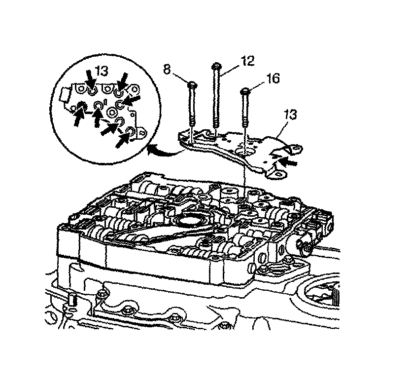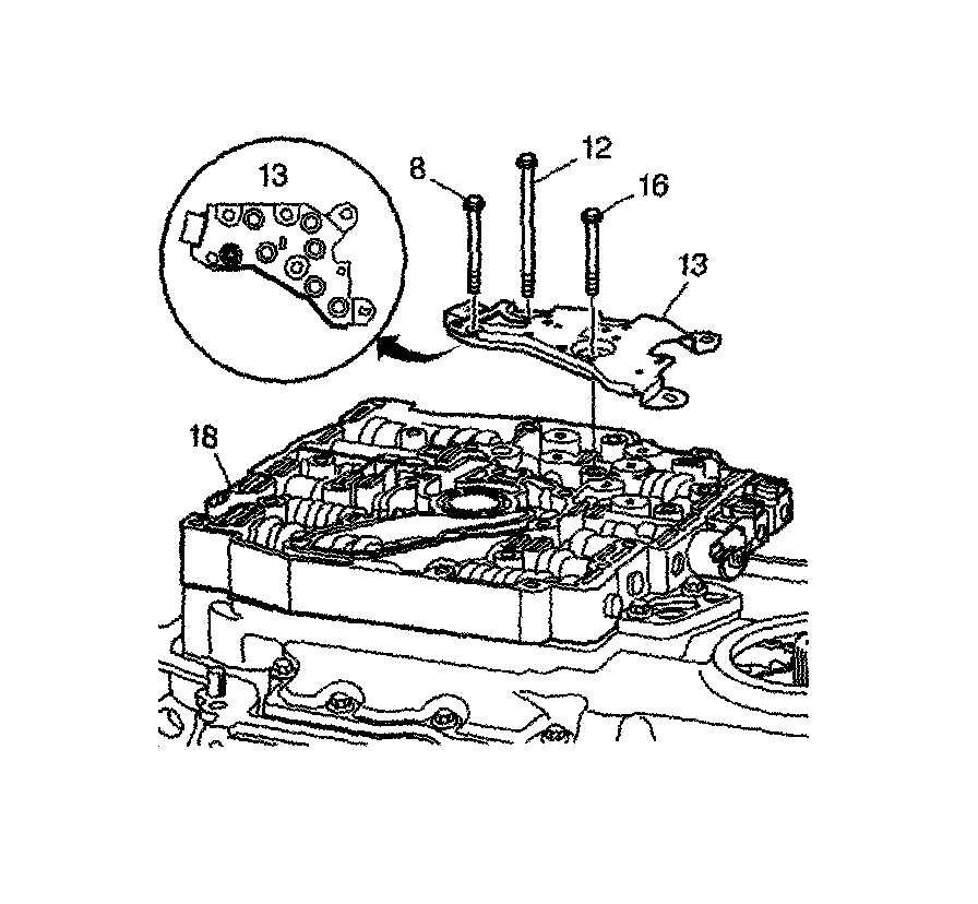 5. Install the TFP switch assembly (13) onto the control valve body assembly.