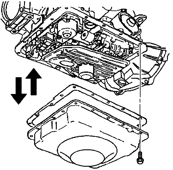 Important: Remove ALL traces of old gasket material from the transmission case and the oil pan gasket surfaces.