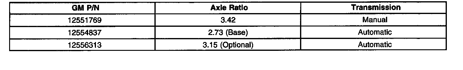 Pinion Shim Calculation Table with an A1 Value Less Than 103.00 mm (4.055 inch) All Axle Ratios