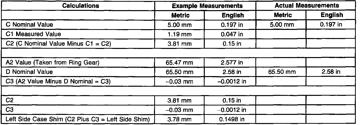 Differential Case Left Side Shim Calculation Table with an A2 Value Less Than 65.5 mm (2.58 inch) 3.15/3.42 Ratio Axles