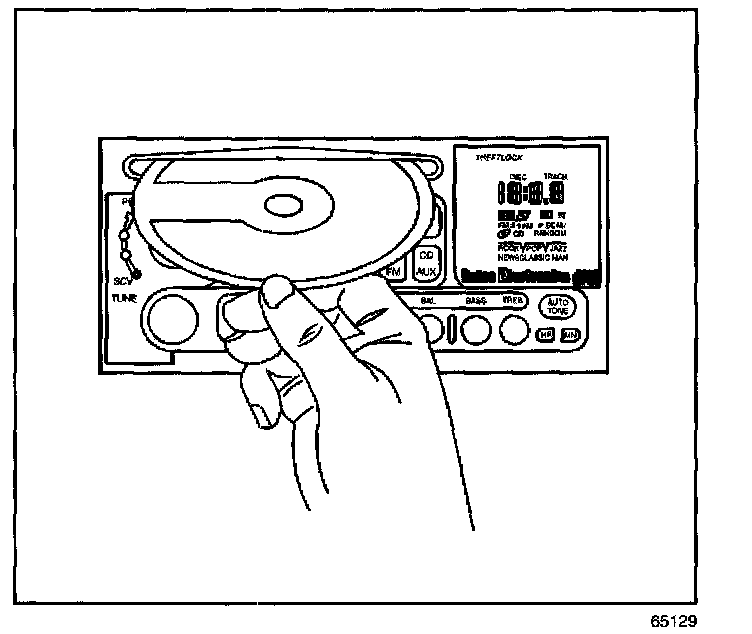Press CD AUX to stop radio play and switch to disc play. Press TAPE AUX to switch back to playing tape. If the remote compact disc changer (U1S) is included in the vehicle sound system, pressing TAPE AUX a second time will allow it to play.
