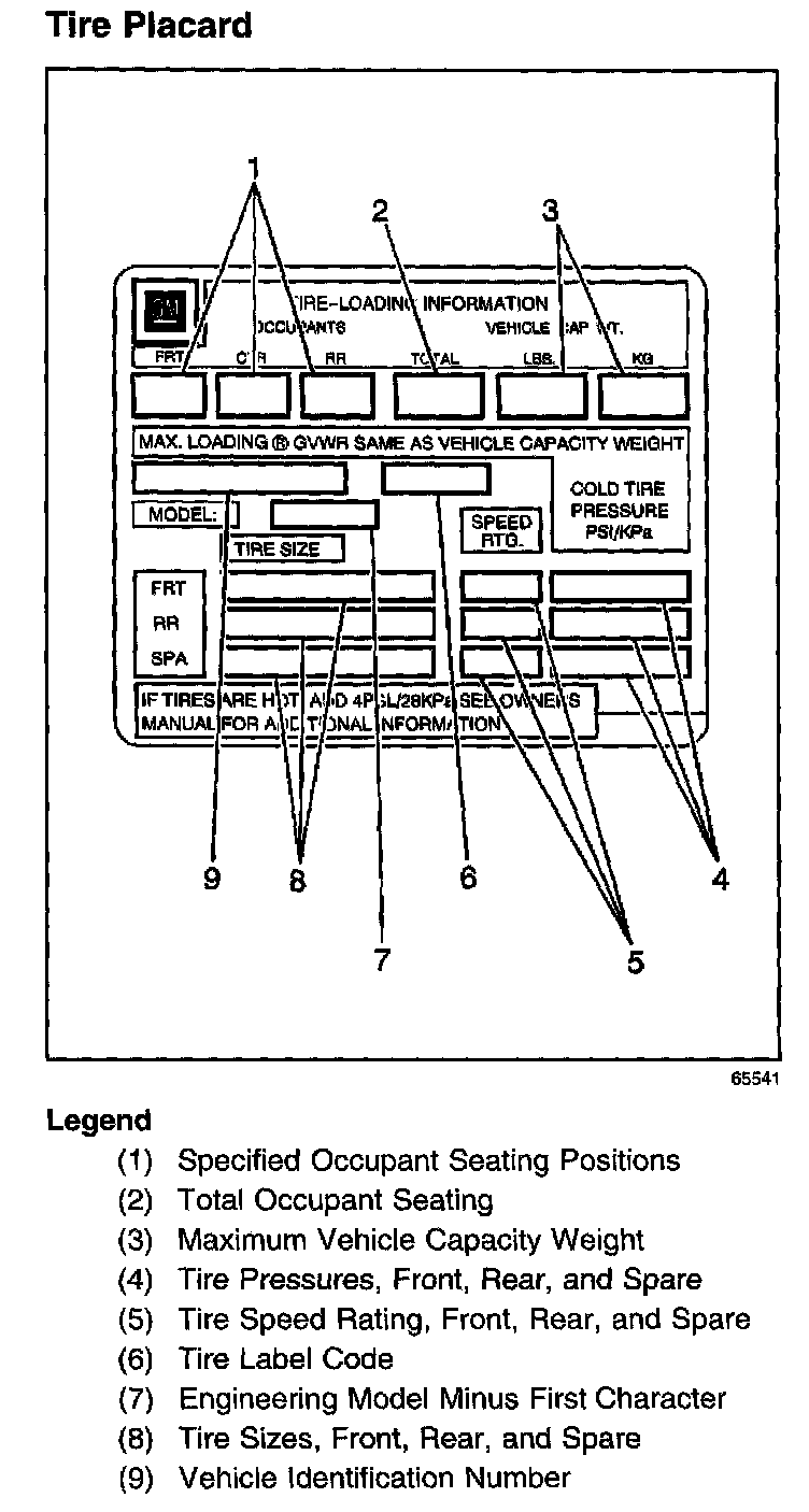 Tire Placard: