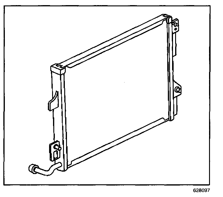 2. Position the condenser into the vehicle. Install the condenser to the radiator so that the condenser is above the installed position.
