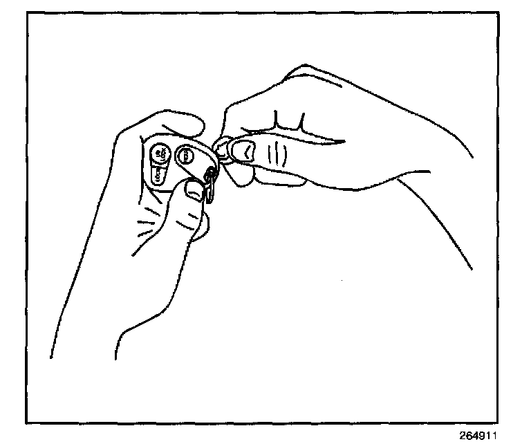 1. Insert a small coin between the 2 halves of the transmitter case at the slot provided near the key ring hole.